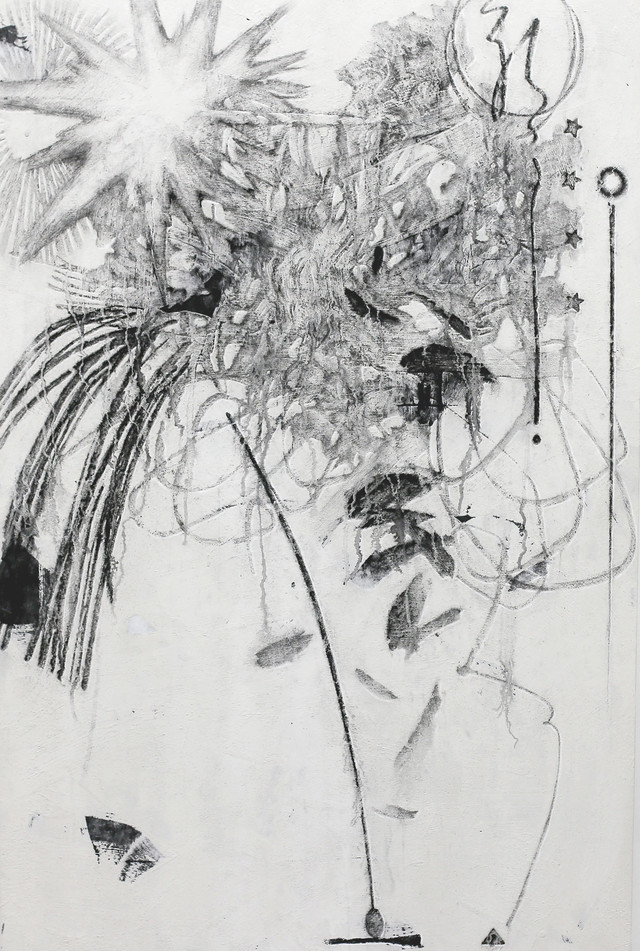 The varying intensity of the lines that flow across his canvases, accumulated through the gestures of his body, and the traces scattered and dripped over monochromatic backgrounds, detach the symbolic meaning of the imagery and deepen abstraction. This combination of improvisational action, freedom of movement, and tactile materiality enables viewers to share an abstract experience between artist and audience.