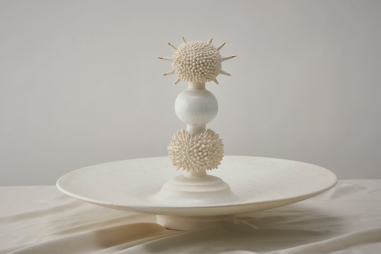 Kwon Eun-young is known for her distinctive ceramic works, characterized by forms made by rolling and attaching pointed clay elements. Her work achieves a balance between decorative appeal and functionality. Her signature pointed embellishments are inspired by the thorns of plants; she carefully creates and assembles these small elements one by one to form a cohesive cluster. While the motif comes from plant thorns, depending on the viewer, it may also evoke stars in the sky or marine life.