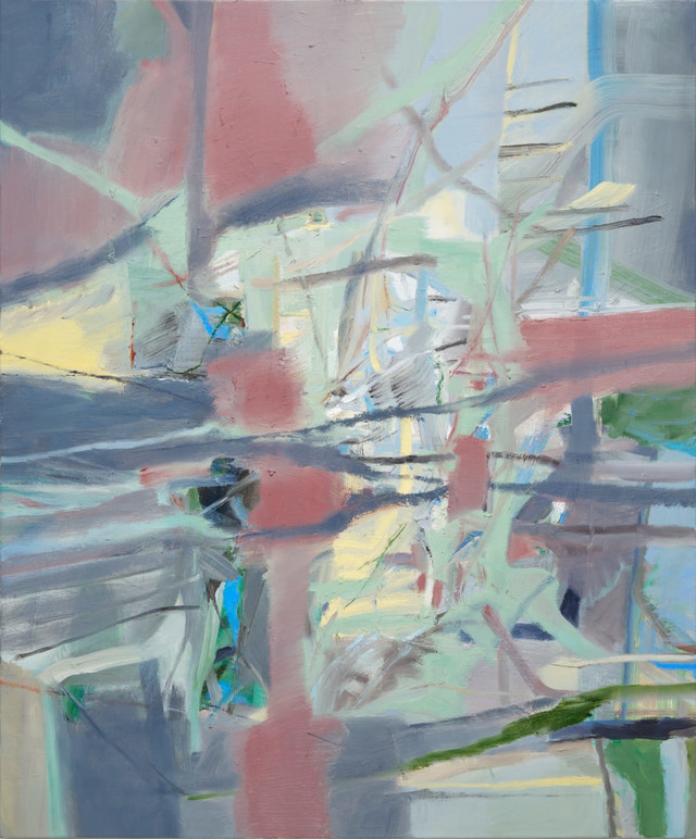 대상의 구체적인 묘사 없이 시간을 두고 물감을 겹쳐 그리는 방식을 통해 작업의 레이어가 보이거나 덮이기도 하고 뒤엉킨 형태를 보이기도 하면서 불규칙한 도시의 시간을 끄집어낸다.