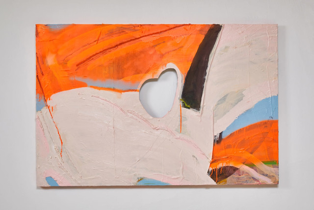 Hanna Kim, Make a Hole with Your Finger, 2024, oil, acrylic, spray, cotton, wood on wood panel, 81x122cm