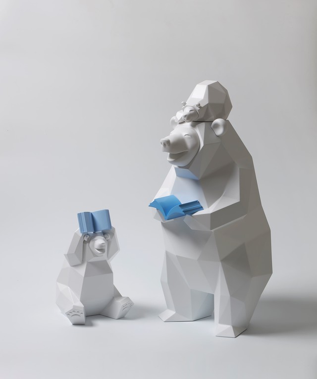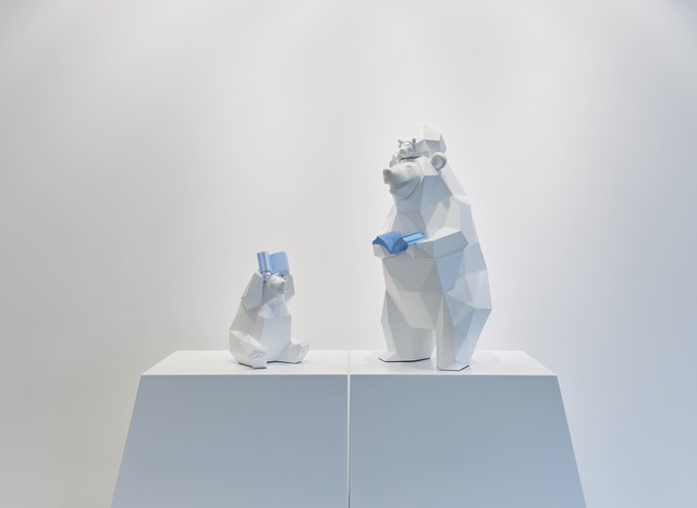 Jang Se-il, Standard Animal - 우산이 되어 줄게, 2024, acrylic on resin, big 30x29x45cm _ small 19x20x35cm
