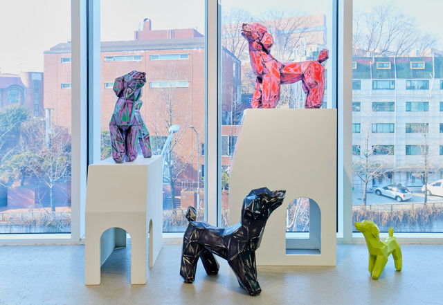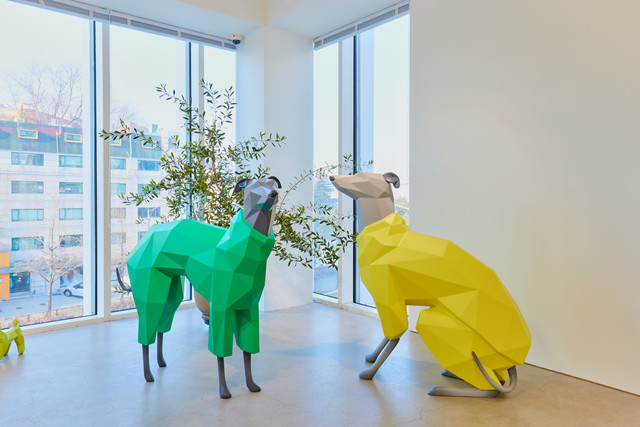 Jang Se-il creates animal figures by connecting countless geometric surfaces such as triangles and rectangles. The resulting animal forms are not those evolved for natural survival advantages but rather imagined creatures evolved to thrive in human-made urban environments. Using straight-lined planes reminiscent of city buildings, he paints these forms with artificial colors like chrome and automotive paint, giving life to sophisticated representations of contemporary animals coexisting within cityscapes.
