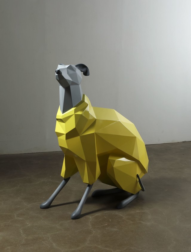 Jang Se-il, Standard Animal - 앉아!, 2024, car paint on stainless steel and resin, 100x38x116cm