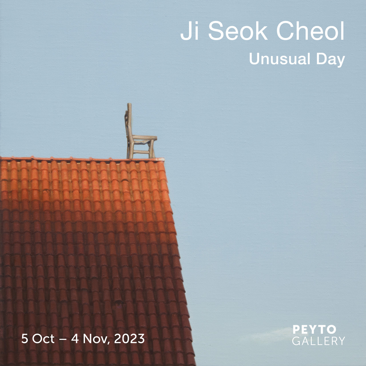 《Unusual Day 예사롭지 않은 날》 展은 의자를 통해 시간의 흐름, 기억을 나타내는 풍경과 사물을 사진처럼 세밀하게 묘사하면서도 미니멀하게 완성된 화면을 통해 작가만의 계획된 구성으로 단단하고 힘 있게 부재를 표현해 온 지석철 작가의 작업을 소개한다.