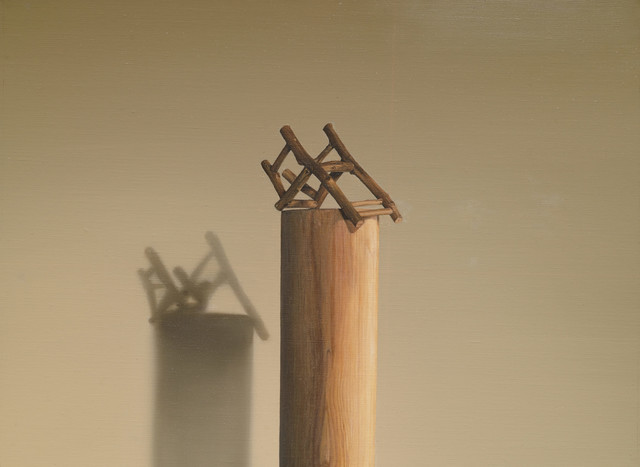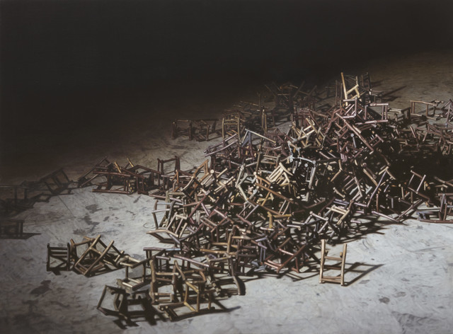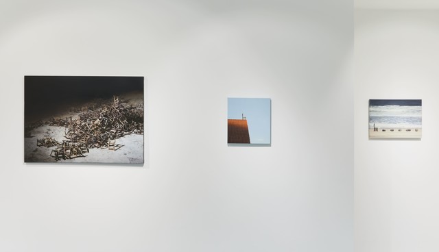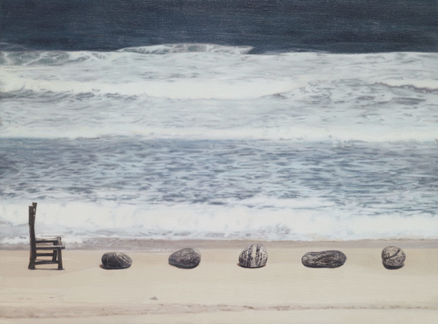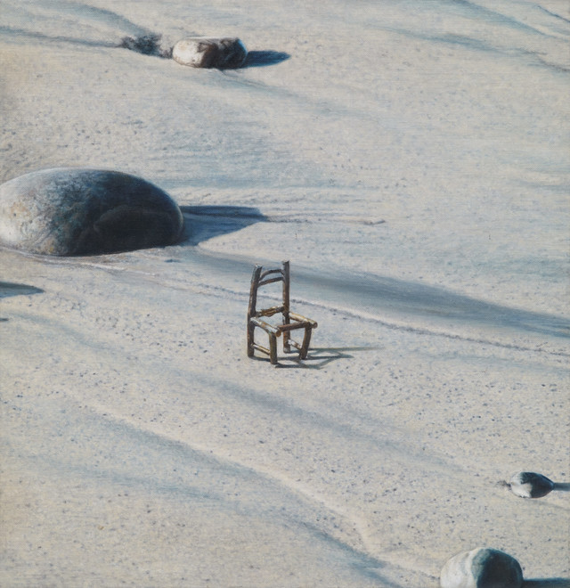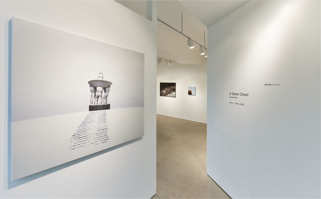 Ji Seok-cheol repeatedly brings out the backrest of a sofa cushion and a mini chair on the picture that are said to be the artist’s symbols to explore the narrative of absence. His works, drawn hyper-realistically with excellent skill, are conceptual images where experience of conversion to objet and three-dimensional (installation) works went through complex variation, beginning from an image based on facts. As a symbol of absence, the mini chair, contrasting with the gigantic nature or man-made structures, plays the main character of the piece and at the same time a secondary tool for existence, a theme that portrays craving, longing, and lyricism. The keyword ‘absence’ that runs through the work presupposes that ‘it existed there.’ The chair could be the artist himself or a contemporary person who is tired of life. Through the chair, which is an emblem of existence, Ji represents modern people and their sentiments of loss, loneliness, and anxiety, and metaphorically expresses the loss and pain of the times.